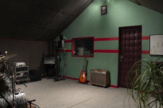 d'une contrôle room de 12m2, d'une remise pour l'enregistrement d'amplis de 9m2 et d'un espace détente / cuisine de 28m2.
